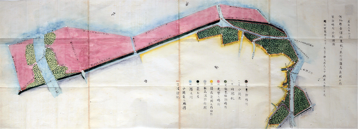 金浦東蚊ヶ爪村領請高新開之内草附場所分間絵図 万延元年(1860)9月 本館蔵